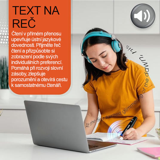 Webová aplikace Scanmarker Reader obsahuje širokou škálu nástrojů pro čtení a funkcí pro zpřístupnění, které lze přizpůsobit individuálním vzdělávacím preferencím. Umožňuje nastavit rozestupy písmen, slov a písma, stejně jako zbarvení písma a pozadí; můžete upravovat rychlost čtení podle požadovaného tempa a vybírat preferovaný hlas.